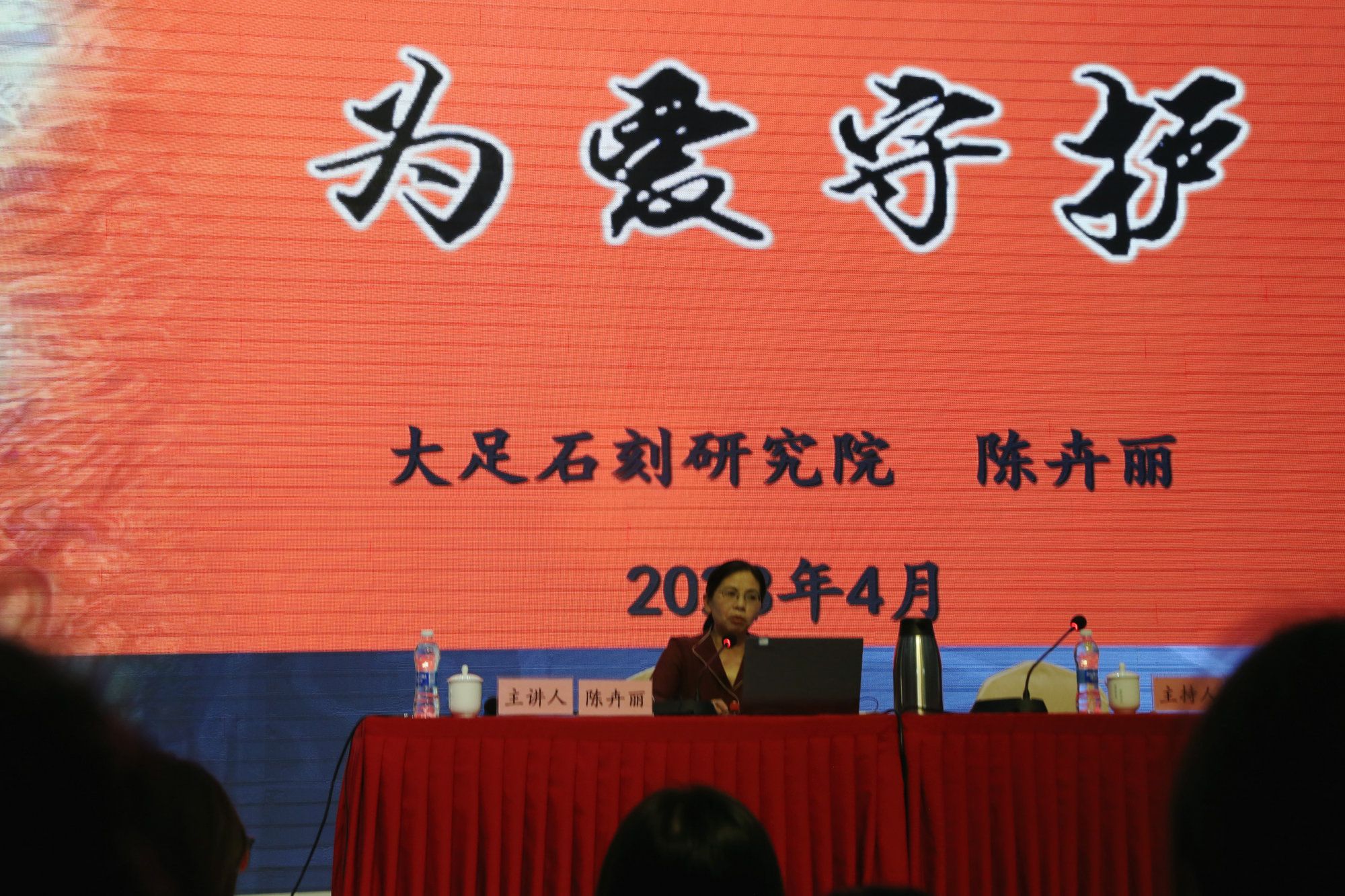 “常常有人问我,文物修复工作既单调又乏味,既清苦又寂寞,是什么让你数十年如一日坚持和坚守?其实,我的回答很简单:因为爱!”陈卉丽说。因为爱而结缘,她与文物幸遇,从此不可救药地爱上了这群不会说话的石菩萨。因为爱而担当,她和她的团队认真到底、大胆创新、不怕伤痛,从2008年到2015年,承担大足石刻千手观音造像修复“一号工程”,历经艰辛的3200多个日夜,终于不辱使命,让“国宝”中的“国宝”千手观音再现金光。