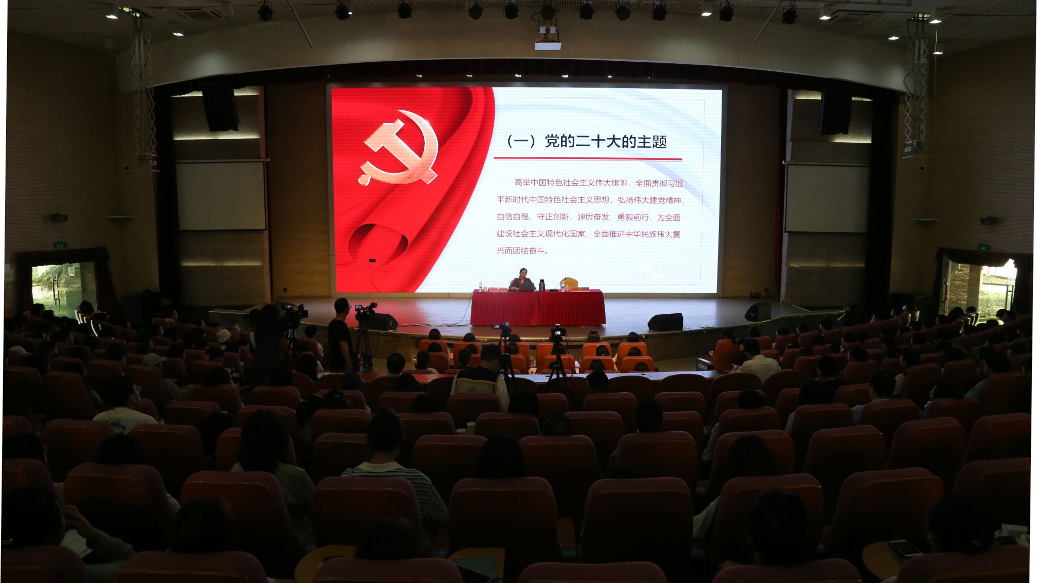 陈卉丽对党的二十大的主题作了深入解读;从三个方面概述了大会的主要成果,即通过了习近平同志代表第十九届中央委员会所作的二十大报告,通过了《中国共产党章程(修正案)》,党的二十届一中全会选举产生了以习近平同志为核心的新一届中央领导集体;从让文化自信“强”起来、让文化遗产“活”起来、让文旅融合“火”起来、让国际传播“动”起来、坚守奉献——宝剑锋自磨砺出、锐意创新——无限风光在险峰等角度分享了作为基层文物保护工作者对党的二十大精神的感悟与实践。