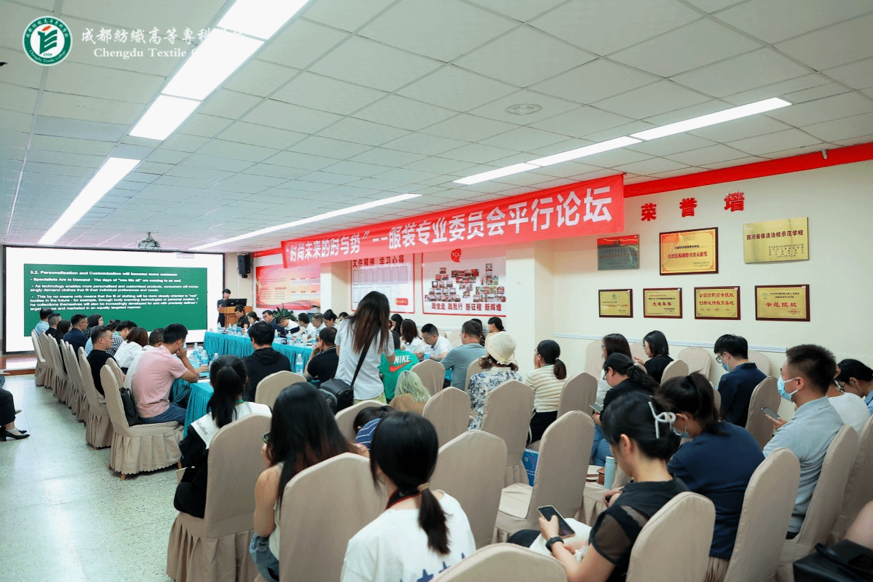 出席本次会议的嘉宾还有中国服装协会常务副会长、中国服装科创研究院院长杨金纯,四川省纤维检验局局长赵斌,际华3536实业有限公司党委副书记张莉,四川省棉纺织行业协会会长蒋德平,广元高级职业中学校校长邓友邦,江安县职业技术学院党委书记叶学波,成都服装服饰行业协会常务副会长刘波,四川祥和鸟服饰有限公司副总经理张成,成都宏冠服饰有限公司董事长赵作虎,重庆3533服饰印染总厂研发中心副主任廖安军等,川渝相关中高职院校、企业、行业协会代表,我校相关部门负责人、教师及学生代表200余人参加会议。