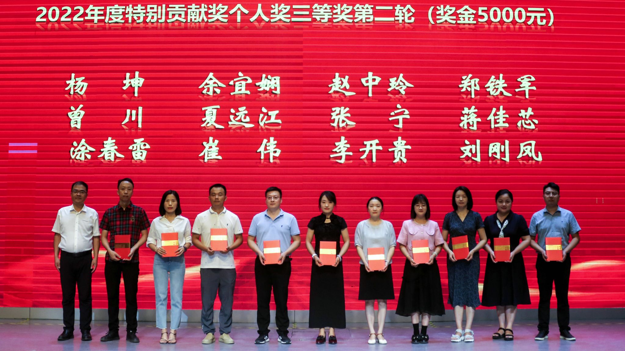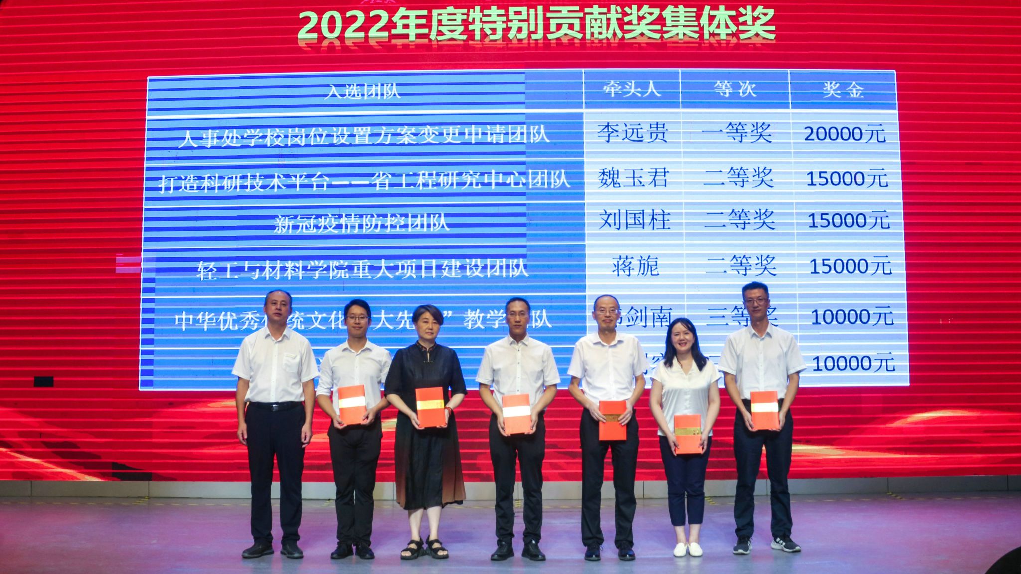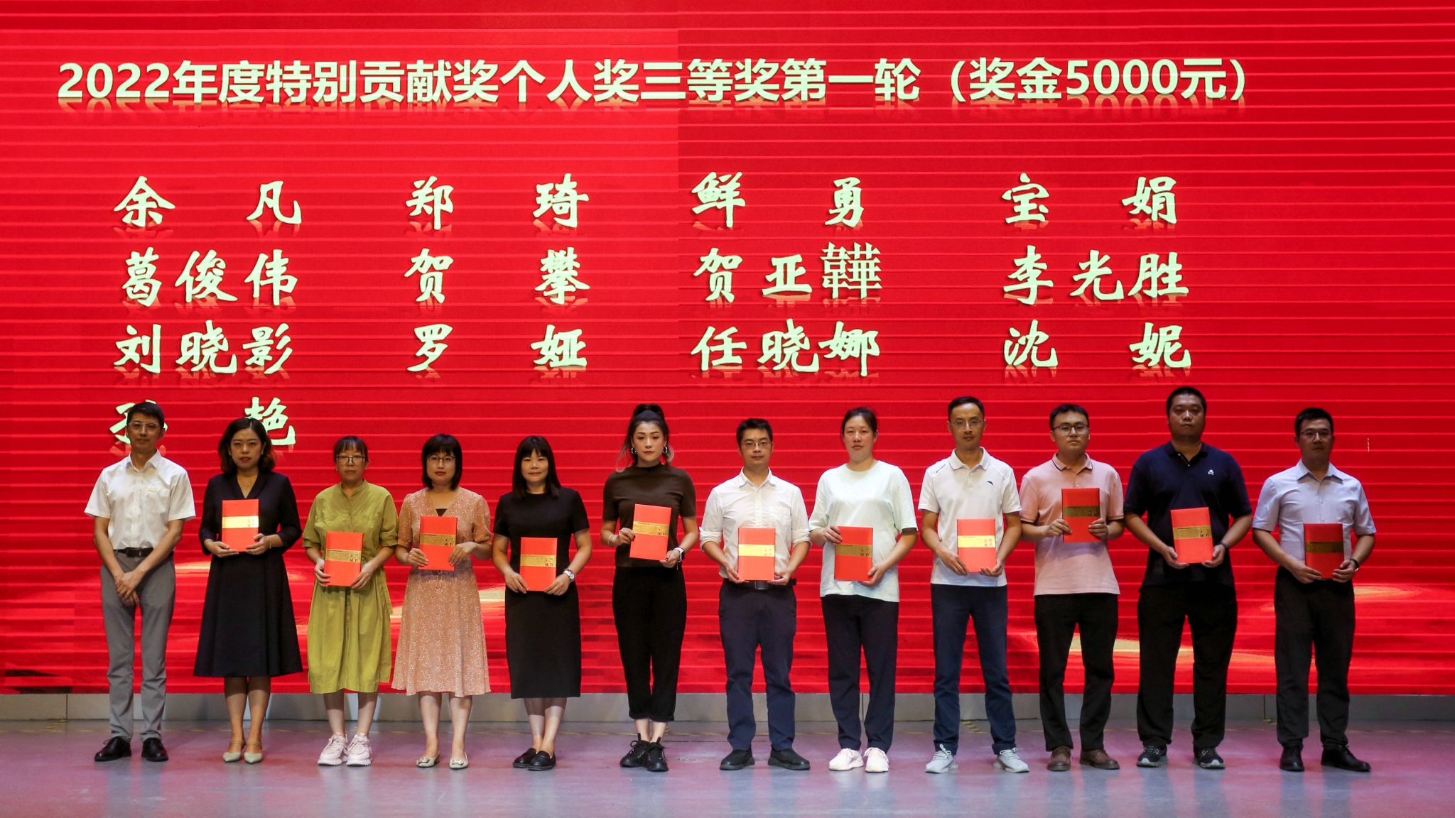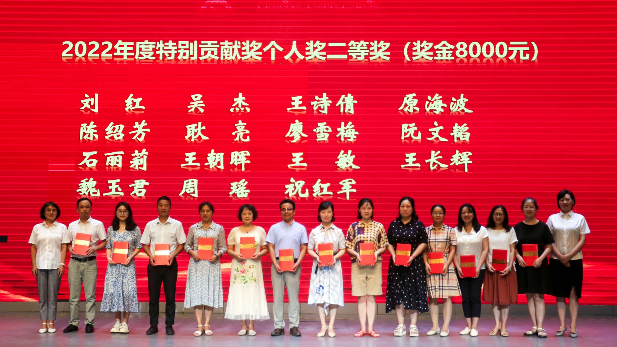 随后,与会校领导为荣获“2022年度特别贡献奖”的6个集体、49位个人,以及2023年度从事教育工作满30年的14位在职教职工隆重举行了颁奖仪式。