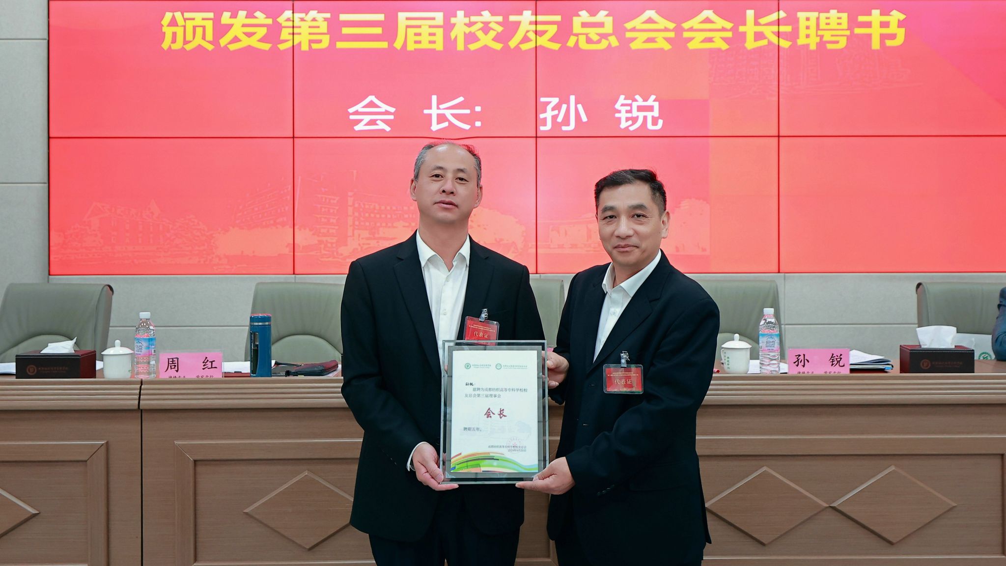 新任校友总会会长孙锐在讲话中表示,新一届校友总会理事会将继续坚守初心,紧密团结,共担使命,努力推动校友会工作再上新台阶,为校友会和学校的发展出谋划策、贡献力量;将加强组织建设,完善内部管理,提高服务水平,为校友们提供更加贴心、高效的服务;将继续加强学校与校友之间的联系与沟通,增进了解与信任,打造发展命运共同体,不断探索互融、共荣的新方式、新路径、新局面;将积极搭建平台、创造机会,为校友们提供更多交流与合作的机会;将加强对外交流与合作,增强校友总会的影响力和凝聚力,为学校和校友的事业发展注入更多新动力。他希望广大校友继续为母校提供鼎力支持,与学校携手共进,共同为学校升本工作和未来发展贡献更多智慧和力量。