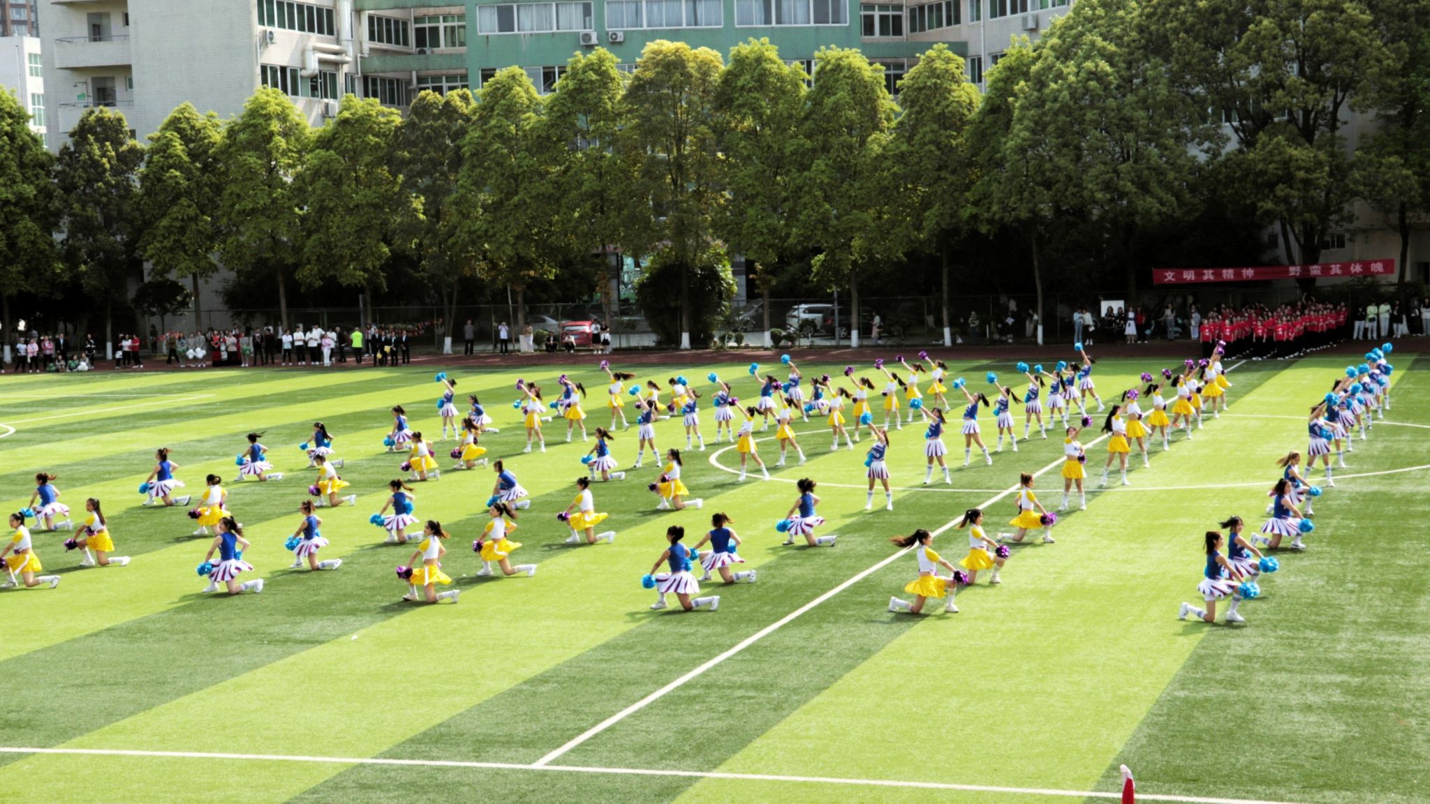 国旗护卫队、彩旗方队、鲜花方队、裁判员方队、各学院及工会等21个方队迈着整齐的步伐依次进入会场,各方队师生衣着整齐、口号嘹亮,展现出良好的精神面貌和蓬勃的青春活力。