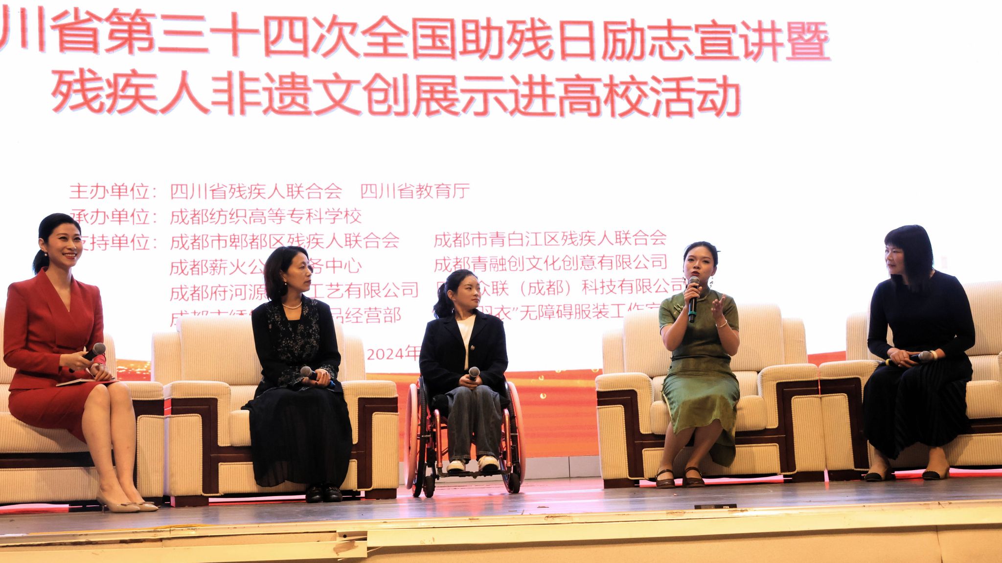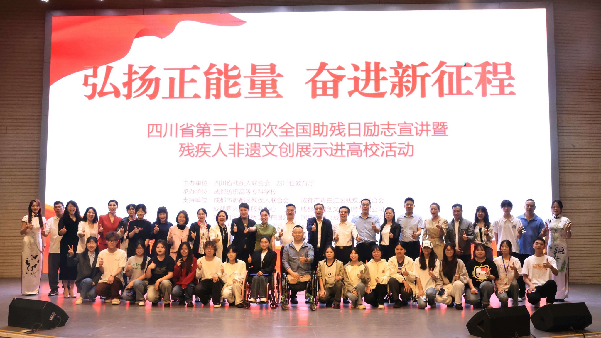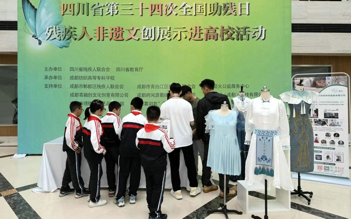 此次活动由四川省残疾人联合会、四川省教育厅主办,我校承办,成都市郫都区、青白江区残疾人联合会和成都薪火公益服务中心、青融创文化创意有限公司、府河源蜀绣工艺有限公司、国华众联(成都)科技有限公司、绣缘红工艺品经营部、“丽裳羽衣”无障碍服装工作室等提供支持。