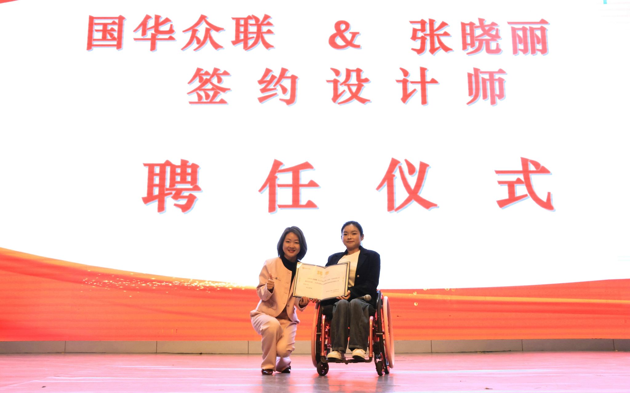 5月8日,“弘扬正能量·奋进新征程”四川省第34次全国助残日励志宣讲暨残疾人非遗文创展示进高校活动在我校举行。省残联副理事长黄卫德、省教育厅职教处副处长王华讲话,强调加强成纺“非遗传承+助残就业”经验的总结与应用推广。校长孙锐介绍了成纺职教助残理念与举措,并从黄卫德手中接过“四川省残疾人大学生创业孵化示范单位”荣誉牌匾。四川残疾人励志报告团、国华众联(成都)科技有限公司分别向我校服装设计与工艺专业在读残疾学生张晓丽颁发报告团成员和签约设计师证书。活动由四川广播电视台陈鸿主持。