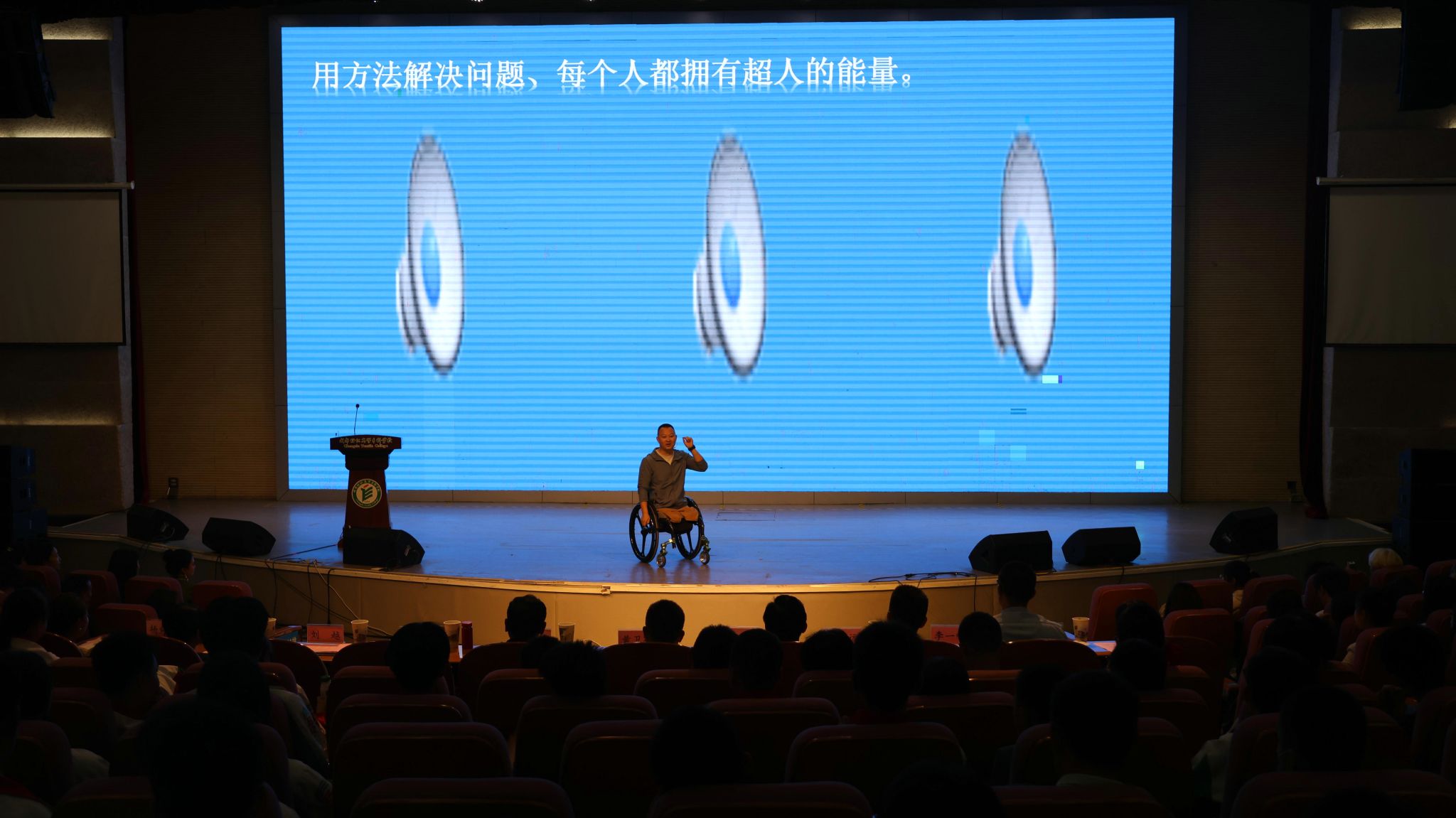 活动邀请成都中医药大学博士、副教授叶莹,全国残疾人游泳锦标赛百米蛙泳冠军“无腿蛙王”代国宏,我校在读大学生张晓丽三名四川省残疾人励志报告团成员和校友张琳馨分享了他们直面伤残、自强不息、拥抱生活、感恩回馈的励志故事。我校服装工程与设计学院党总支书记太扎姆和纺织工程学院党总支副书记罗娅应邀参加访谈,介绍了学校和张晓丽创业团队之间、学校和残联组织与张琳馨校友之间的互动故事。动人心魄的故事、感人至深的精神,令现场400余位高校和中小学师生时而潸然泪下、时而掌声雷动。