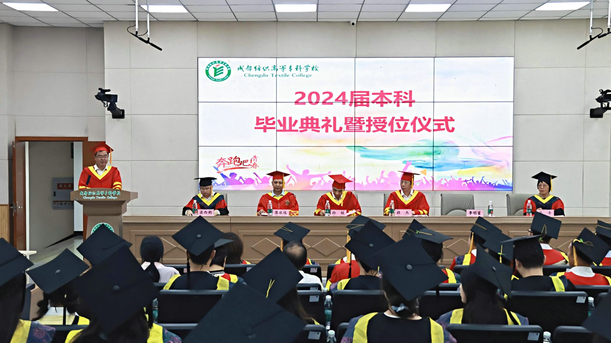6月27日下午,2024届本科毕业典礼暨授位仪式在我校综合楼二楼阶梯教室隆重举行。四川轻化工大学党委常委、副校长颜杰勉励圆满完成学业的88名毕业生勤于实践、踏实做事,踏上全新的征程,接受新的使命,迎接新的挑战,开启人生新的篇章。我校党委副书记、校长孙锐致辞,希望毕业生们不负时代,不负韶华,不负党和人民的殷切期望,踔厉奋发攀高峰,勇毅前行向未来。雷迪波尔服饰股份有限公司副总裁、财务总监张斗激励同学们持续发扬严谨专注、精益求精的工匠精神,追求敢于创新、善于创造的卓越品质。