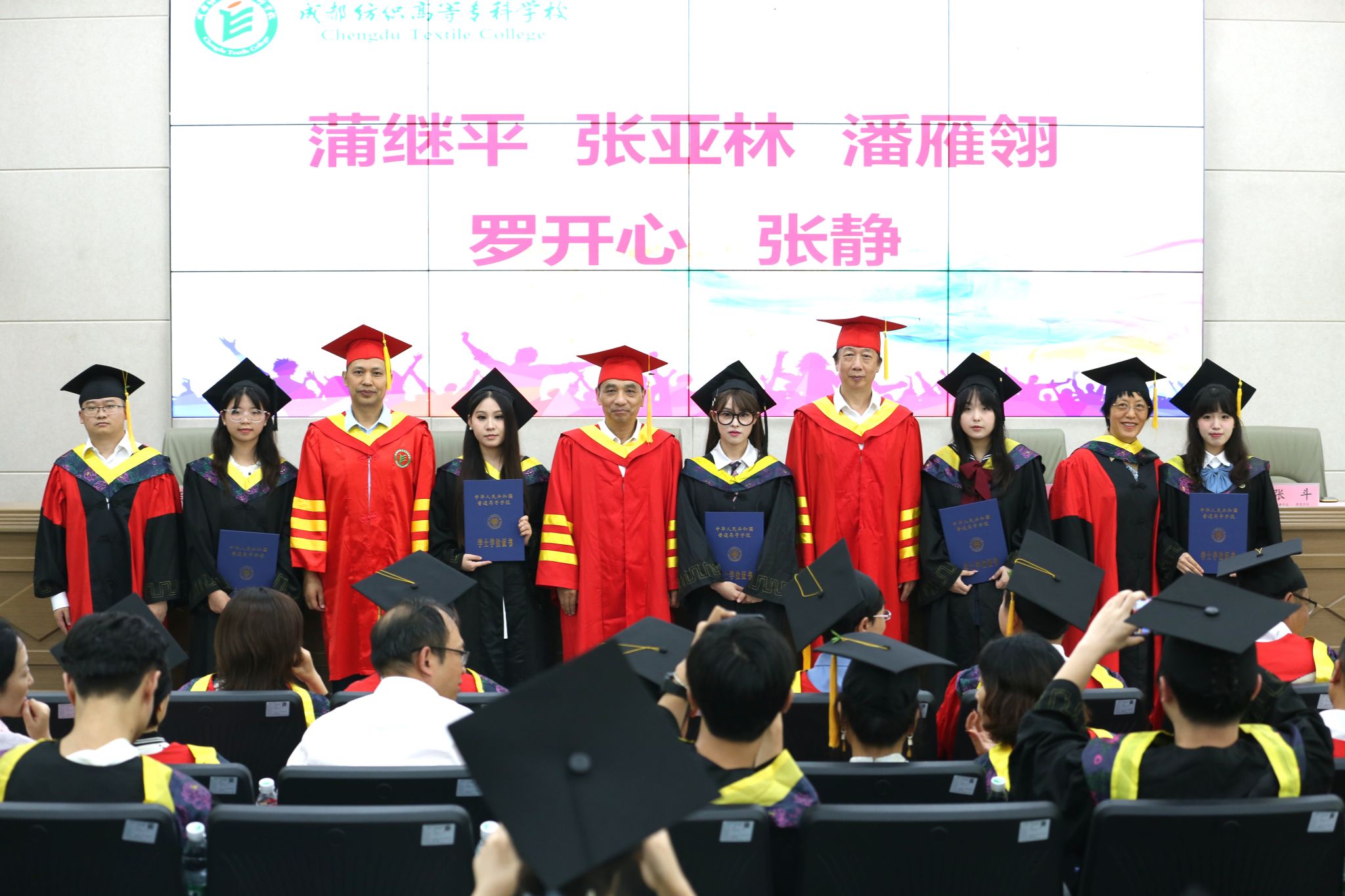 颜杰宣读《四川轻化工大学关于表彰2024届优秀大学毕业生的决定》和《四川省教育厅关于公布2024届四川省优秀大学毕业生认定结果的通知》,我校党委常委、副校长蒲冰远宣读《成都纺织高等专科学校关于表彰2024年“织菁之星”的决定》,孙锐为叶圆梦、许洪飞两位获得荣誉的学生颁奖并合影留念。