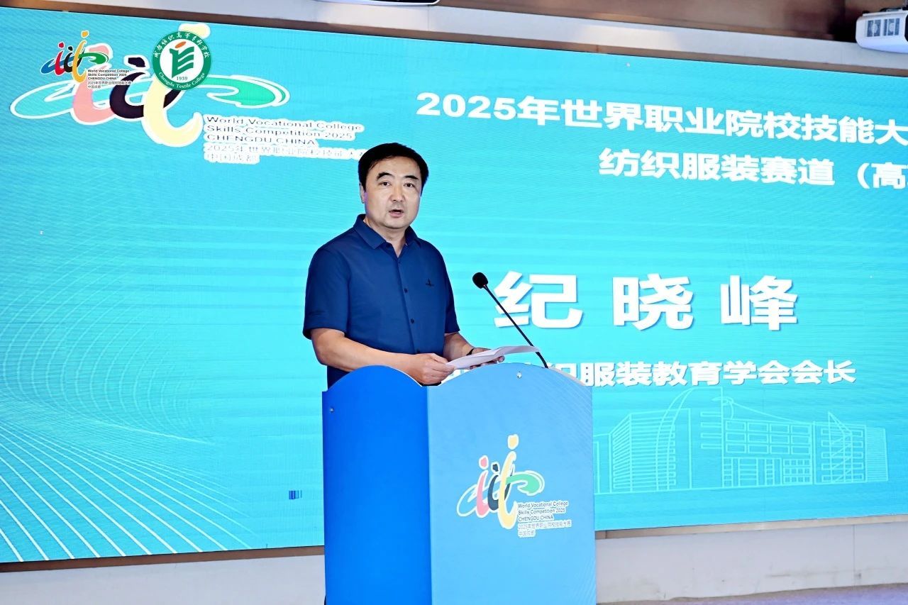 纪晓峰表示,世界职业院校技能大赛是展示职业教育成果、交流职业教育经验的重要平台,也是推动职业教育高质量发展的有力抓手。他希望参赛同学要坚定信念,树立远大的理想,以成为行业领军人才为目标,努力拼搏,为实现纺织服装强国梦想贡献力量;要赛出水平,展现良好风貌,在比赛中沉着冷静,发挥最佳水平,严格遵守比赛规则,充分展示新时代职业院校学生的风采,同时学习借鉴其他选手的长处,互相交流,共同提高;要勇于创新,培养工匠精神,敢于突破传统思想的束缚,大胆创新设计理念,工艺和技术方面要精雕细琢、追求完美,努力打造出具有创新性和竞争力的优秀作品。