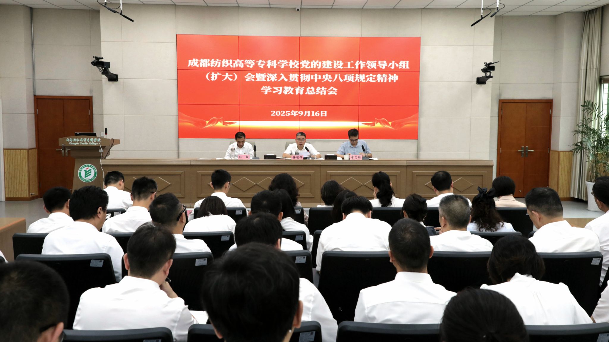 9月16日,学校召开党的建设领导小组(扩大)会议暨深入贯彻中央八项规定精神学习教育总结会,传达学习习近平总书记关于学习教育的重要指示精神,学习贯彻中央党的建设工作领导小组会议精神,省委常委会会议精神,全面总结学校学习教育工作,对巩固拓展学习教育成果、锲而不舍落实中央八项规定精神、推动作风建设常态化长效化作出安排。省委教育工委党建与干部人才处副处长唐志颖到会指导。党委书记任迎伟主持会议并讲话。
