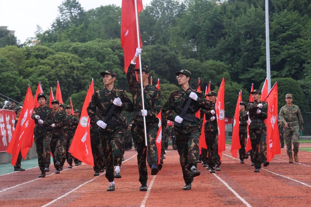 校领导在讲话中指出,同学们在十四天军训淬炼中证明自我,形成“昂起头”的勇气、“挺起胸”的豪气与“立定身”的骨气。期望同学们未来做到三点:一是“经纬织梦”,以技能报国践行家国担当,将个人理想与国家前途、民族命运紧密相连,用智慧汗水在平凡岗位创造不凡业绩,为实现中华民族伟大复兴贡献力量。二是“匠心织造”,以精益求精锤炼立业之本,以坚韧不拔与追求卓越的态度打磨技艺,勇于挑战,逐步成长为“能吃苦、技艺精、善创造”的高素质技术技能人才。三是“共纺锦绣”,以团结协作涵养校园新风,将集体荣誉感延续至学习生活,共同织就“团结、勤奋、求实、创新”的校园文化,助力个人全面发展。