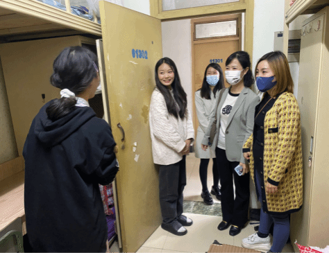 新生辅导员们在深入寝室时,向同学们反复宣讲疫情防控政策,希望同学们配合学校做好疫情防控工作,在寝室勤开窗通风,要佩戴口罩,注意个人防护;耐心讲解学生线下复课的注意事项,鼓励学生做好学业规划,学好专业知识。