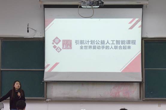 张丽君老师、谭智敏老师和夏祎忞老师在五场讲座中,向同学们介绍了 “引航计划”的背景、人工智能在我们日常生活中的运用、当前我国人工智能的现状,指出:目前人工智能方面人才的缺乏,同时也缺乏一个完整的人工智能学习体系。“引航计划”致力于普及人工智能人才选拔培养,其学习内容包括线上四门课程和线下两门实训,通过线上考试和实战项目评估,合格的同学即可获得“引航计划”人工智能微专业证书。