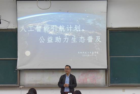 11月1日下午,智能制造与装备学院携手四川城乡融合人才培育研究基金会青少年教育公益基金,在教学楼C104举行“人工智能引航计划,公益助力生态普及”公益讲座。智造学院院长罗纲,西南财经大学人力资源管理师、四川省职业教育教学指导委员会委员张丽君老师,高级讲师夏祎忞老师,高级职业生涯规划师谭智敏老师,智造学院辅导员何巧林老师,以及学院各班同学参加了本次讲座。