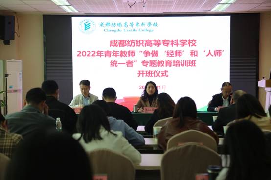 11月3日,学校举行2022年青年教师争做“经师”和“人师”统一者专题教育培训班开班仪式,党委常委、纪委书记张江婴,人事处处长李远贵和学校新进教师、青年教师代表参会,会议由人事处副处长李华主持。