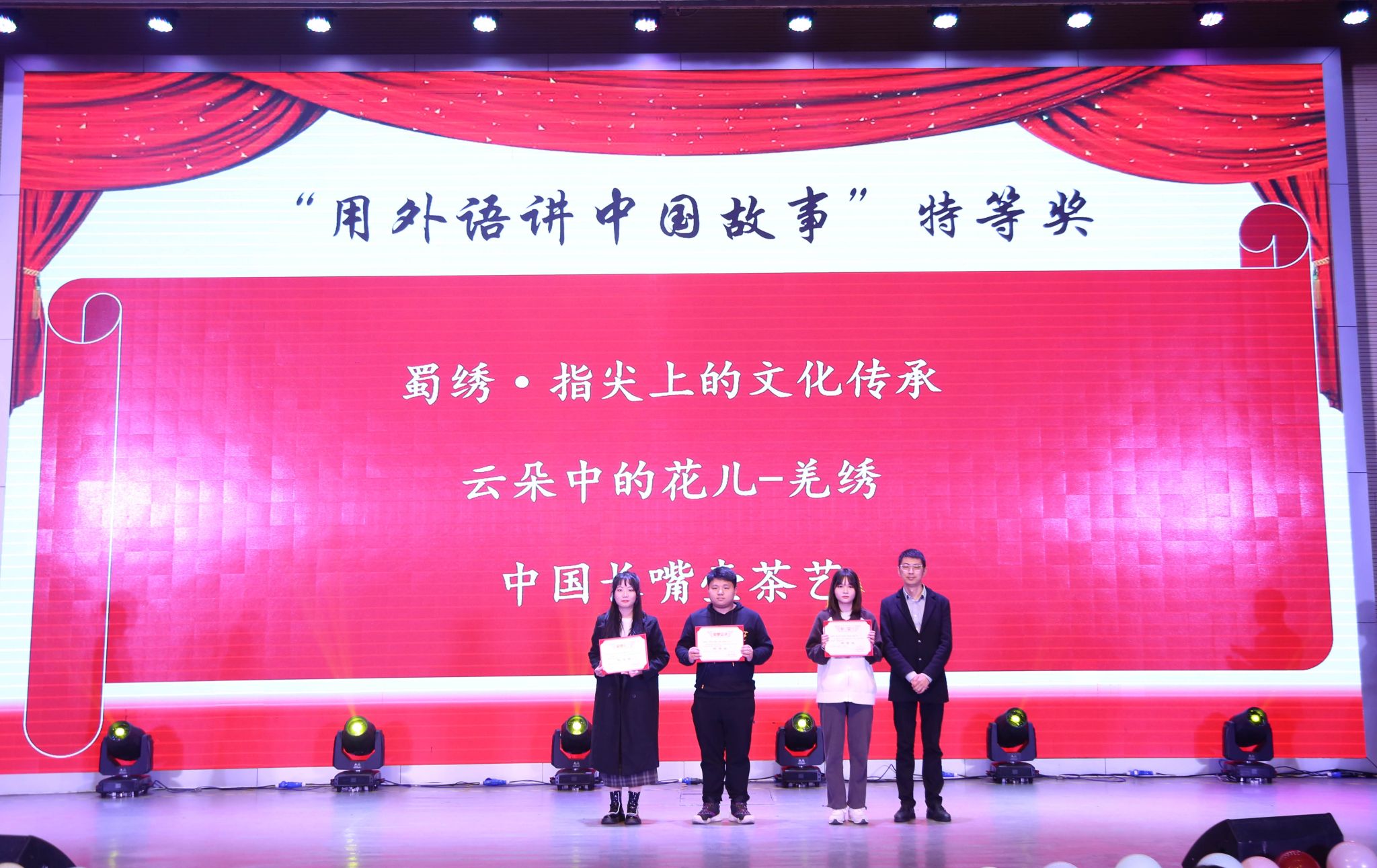 “用外语讲中国故事”短视频大赛获奖作品颁奖仪式环节,宋超副校长为同学们颁奖并表示祝贺,对指导老师们的辛苦付出表示感谢。他指出,活动对传承和弘扬中华优秀传统文化、让世界听到中国声音有着重要意义,希望同学们紧跟时代步伐,努力践行新时代青年的使命与担当,学好中华优秀传统文化、学好外语,讲好中国故事。
