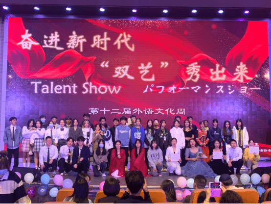 第十二届外语文化周才艺秀展示环节,12组参赛选手为观众们带来了演讲、朗诵、歌曲、配音、小品等精彩纷呈的才艺作品。比赛中的互动环节,还专门设置了二十大热词翻译抢答,同学们踊跃参与,将欢乐的气氛推向了顶点。
