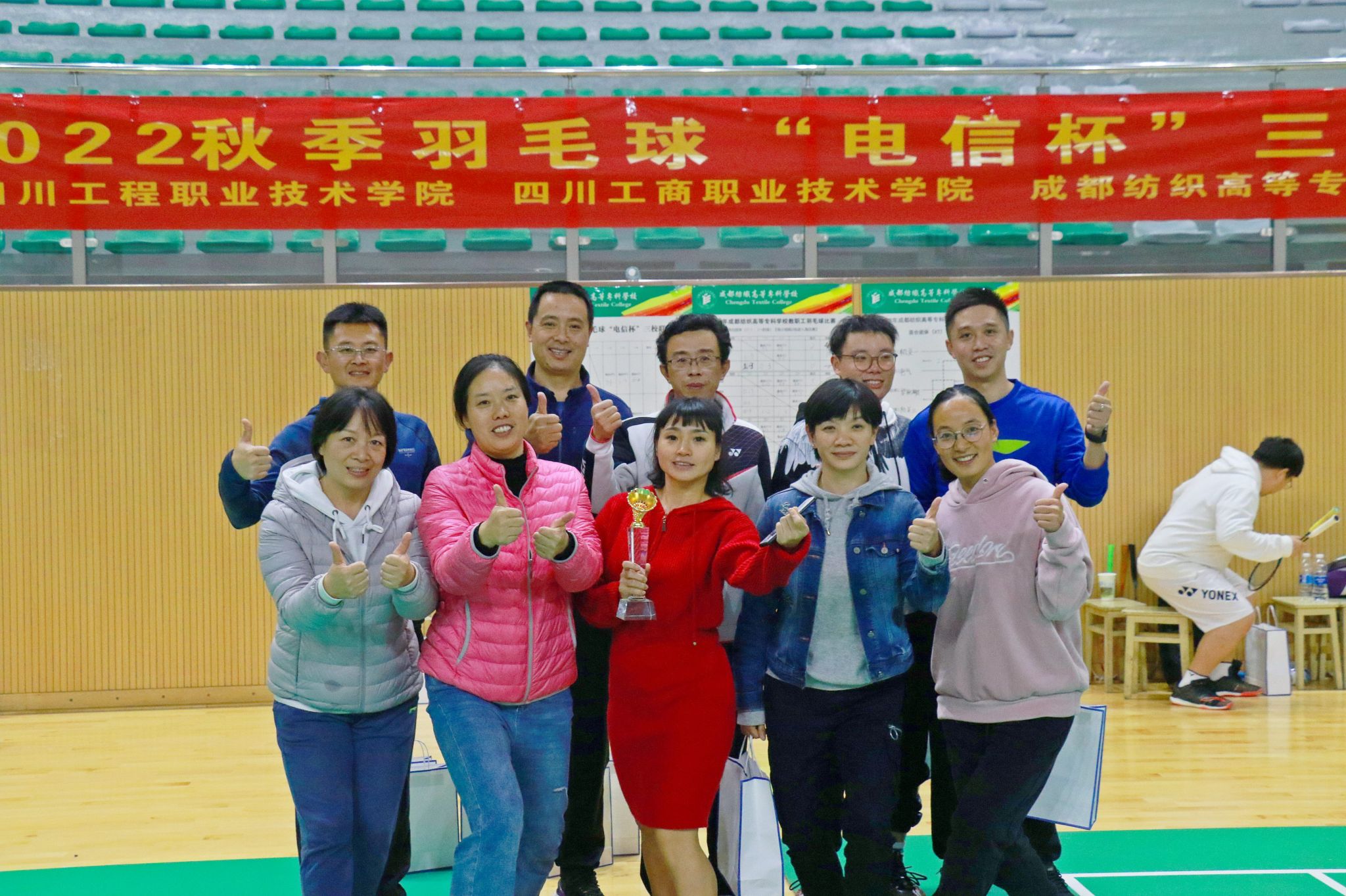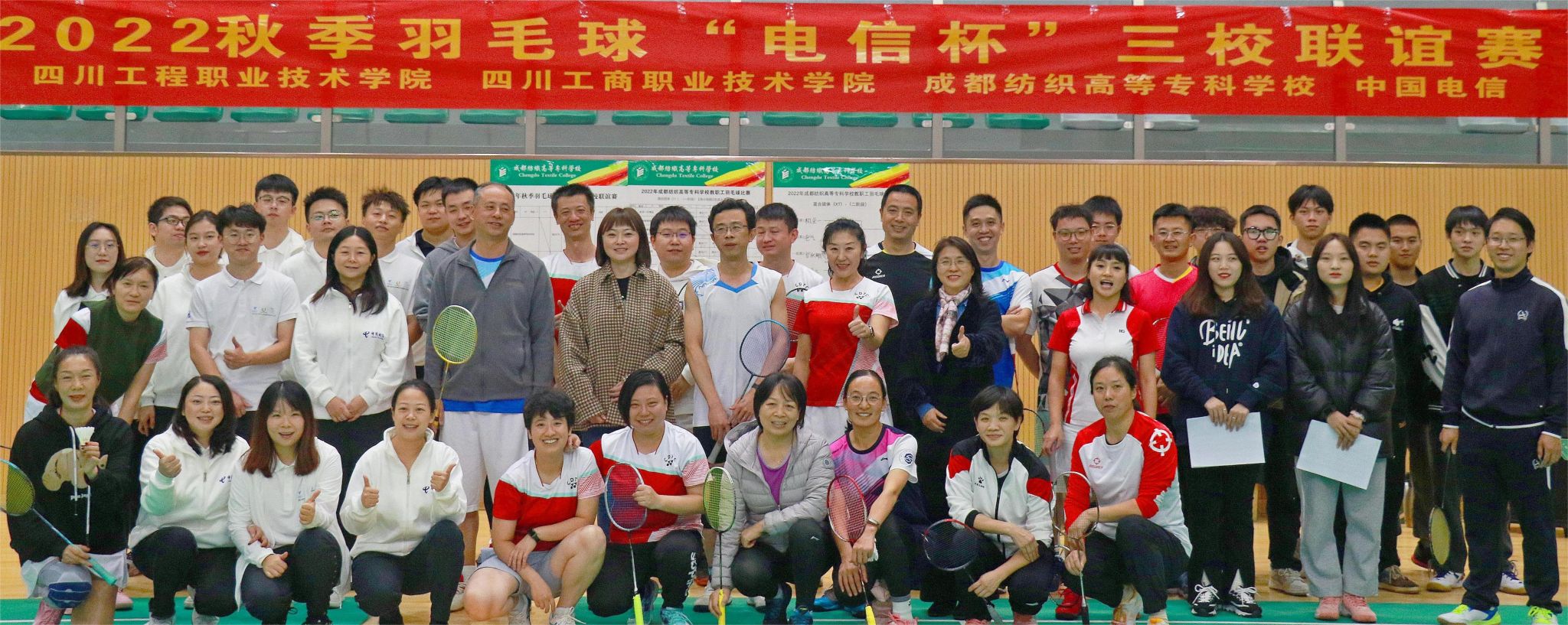 11月12日,由校工会主办、教职工羽毛球协会承办的“电信杯”校际羽毛球联谊赛在我校体育馆举行。四川工程职业技术学院、中国电信郫都区分公司、成都纺织高等专科学校组队参赛。