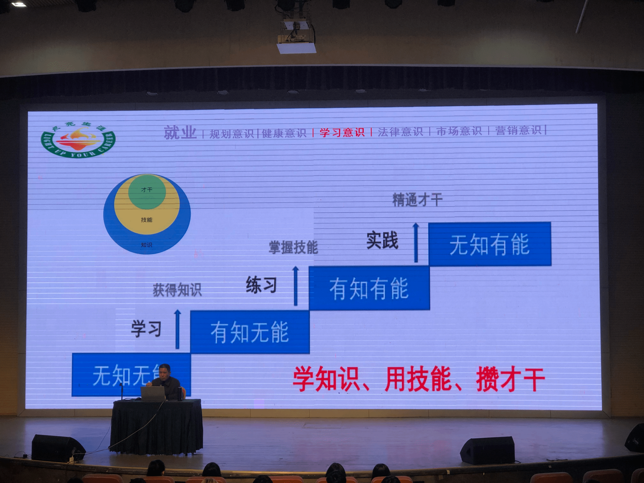 讲座分为为大学新生就业指导、大学生职业生涯规划大赛辅导两个板块。曾志刚老师介绍了当前的就业形势,以就业导向,引导大学新生树牢规划意识、健康意识、学习意识、法律意识、市场意识和营销意识,扎实过好大学生涯。围绕大学生职业生涯规划大赛(求职大赛),他讲解了办赛原因、赛事特点、如何参赛、如何求职,指导参赛选手填好报名表,制作好职业生涯规划书和参赛视频,并提醒同学们要有清晰职业目标和自我认知,制定切实可行的行动计划,做好相关资料准备,以良好心态应对现场比赛。