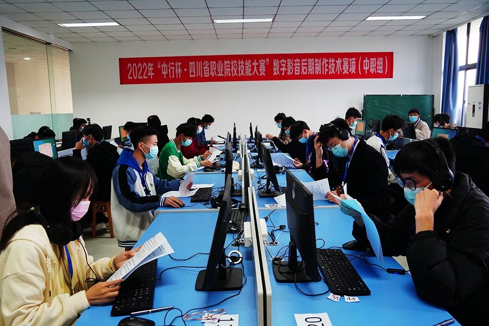 11月18日至19日,2022年“中行杯”四川省职业院校技能大赛“数字影音后期制作技术” (中职组)技能大赛在我校成功举行,来自全省各地市州的37支参赛队共57名选手参加了比赛。