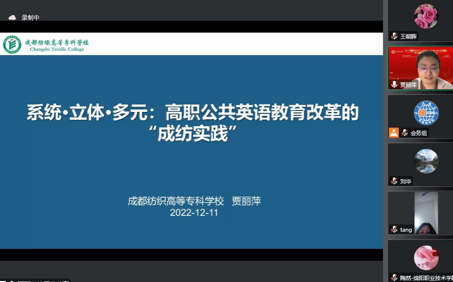 12月10日,四川省高等教育学会高校外语专委会2022年年会暨外语学科发展论坛研讨会在电子科技大学召开,来自全省各高校的300多名代表在线参会。我校文旅学院王朝晖教授应邀作主题报告,贾丽萍老师代表我校作交流发言。