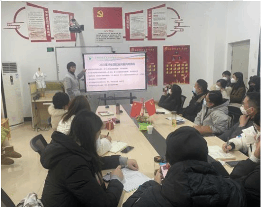 会上,就业指导辅导员赵艳婷从学生因素、教师因素、社会因素等多个维度分析2023届毕业生就业数据,并提出了具体措施。
