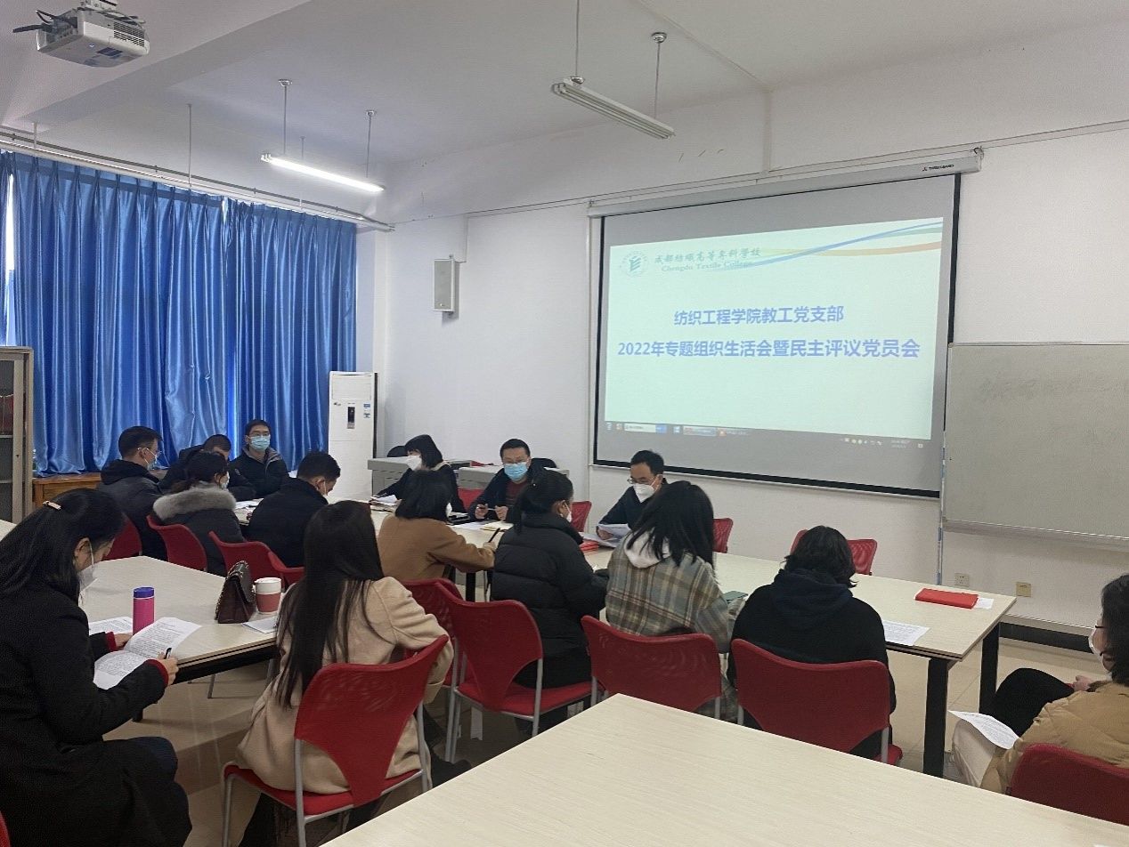 1月5日下午,纺织工程学院教工党支部在实训楼D204会议室召开2022年度专题组织生活会暨民主评议党员会。会议由党支部书记陈绍芳主持,支部全体党员参加会议。