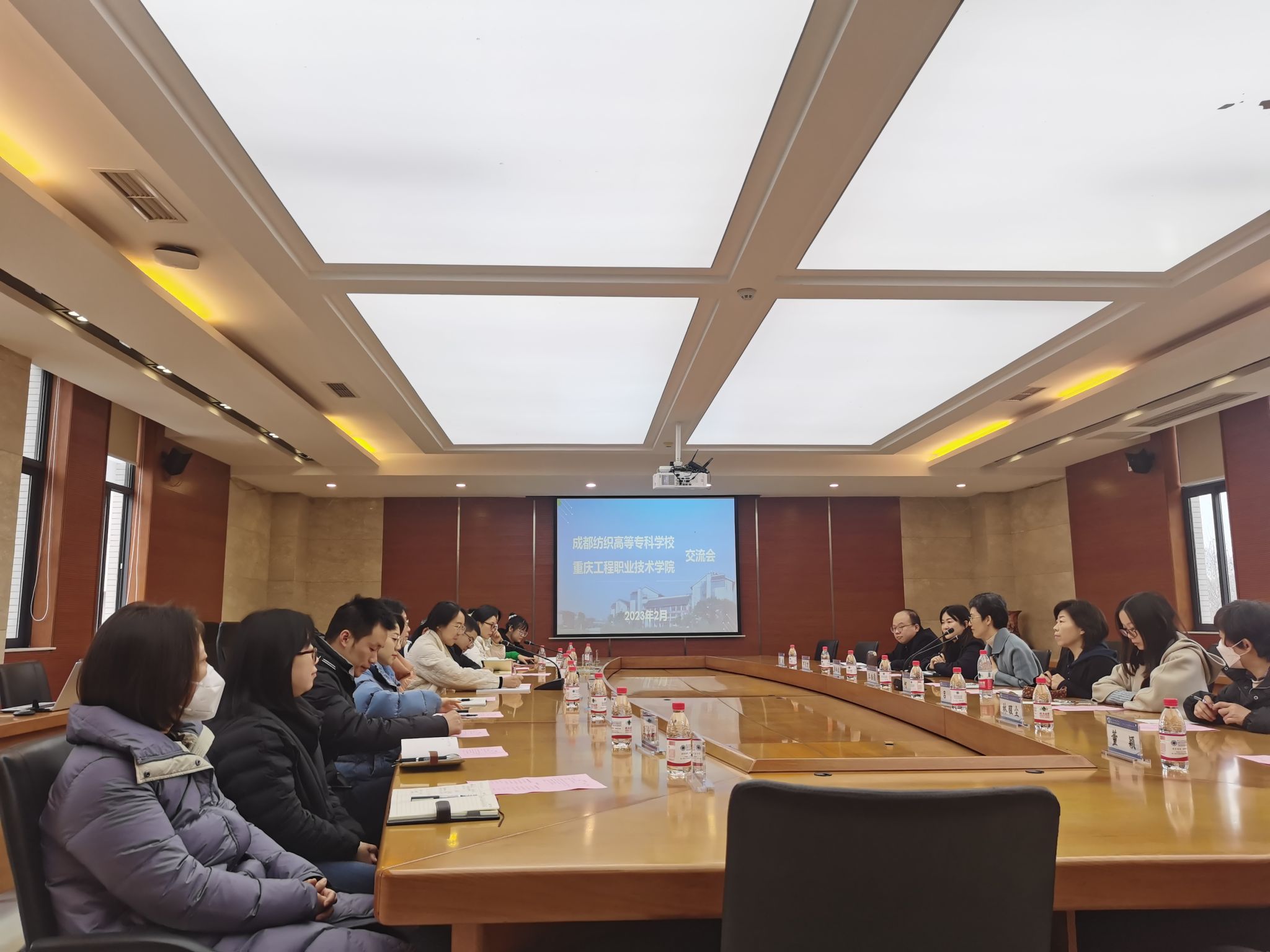 会上,杨娟和王浩瀓分别介绍了各自学校教务处架构及职能分工,双方工作人员就日常教务工作、二级管理、专项建设及人才培养方案作了深入交流讨论。重庆工程职业技术学院就指标性成果作了详细分享,包括校企合作、教师教学能力大赛、学生技能竞赛、课程建设及教材建设等内容。