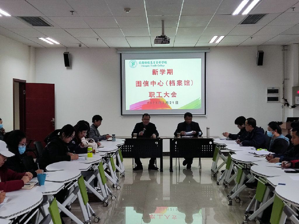 2月21日上午,图信中心(档案馆)新学期职工大会在图书馆一楼电子阅览室会议室召开,副校长李明富出席会议。会议由图信中心主任李鹏主持。