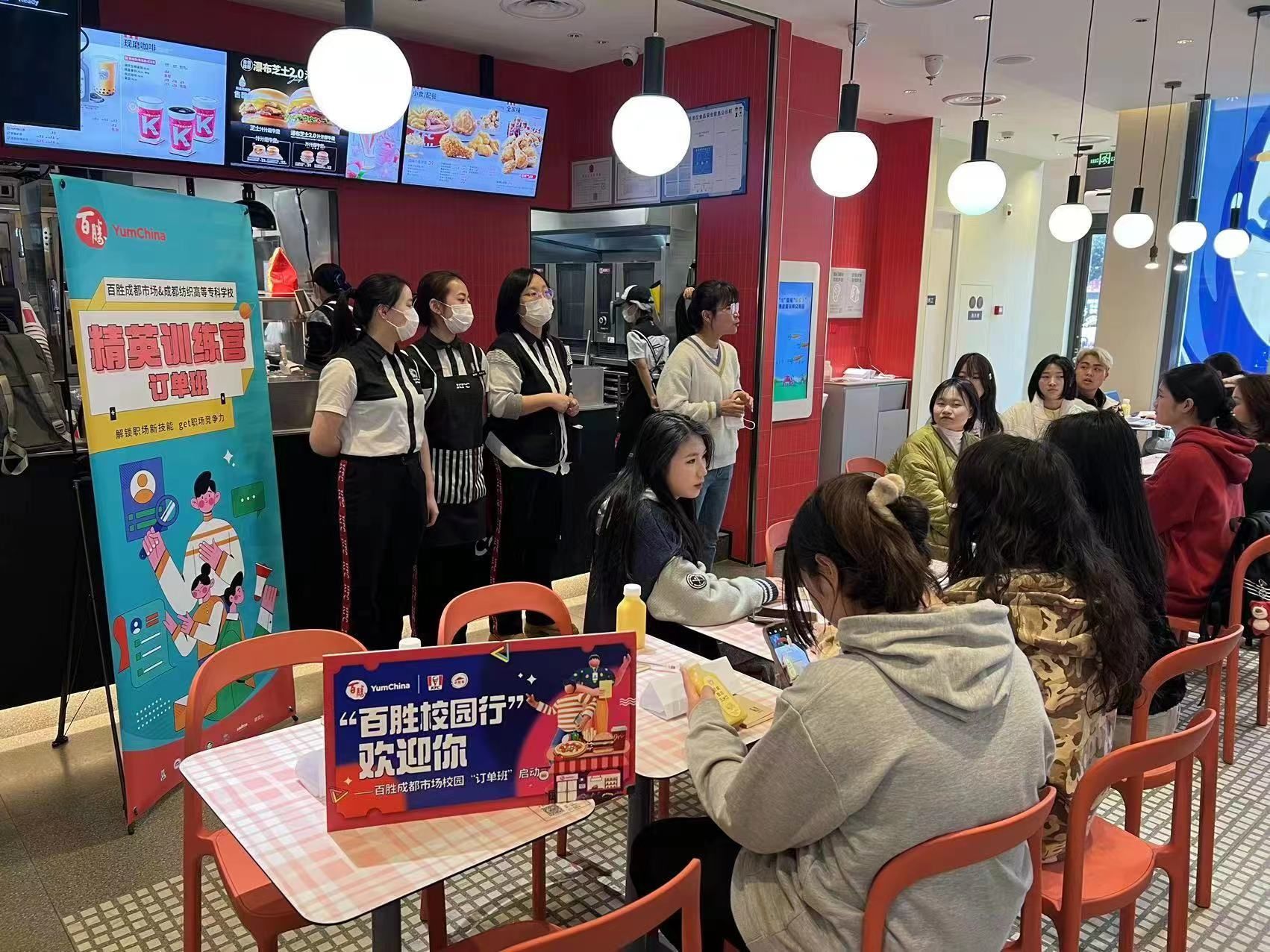 本次“百胜精英训练营”是百胜餐饮在成都市场落地的第一个校企深度合作的订单班,受到校企双方高度重视。经过双方前期充分交流讨论,百胜成都公司为订单班学生精心准备了企业金牌培训课程,定制了成长培养规划。