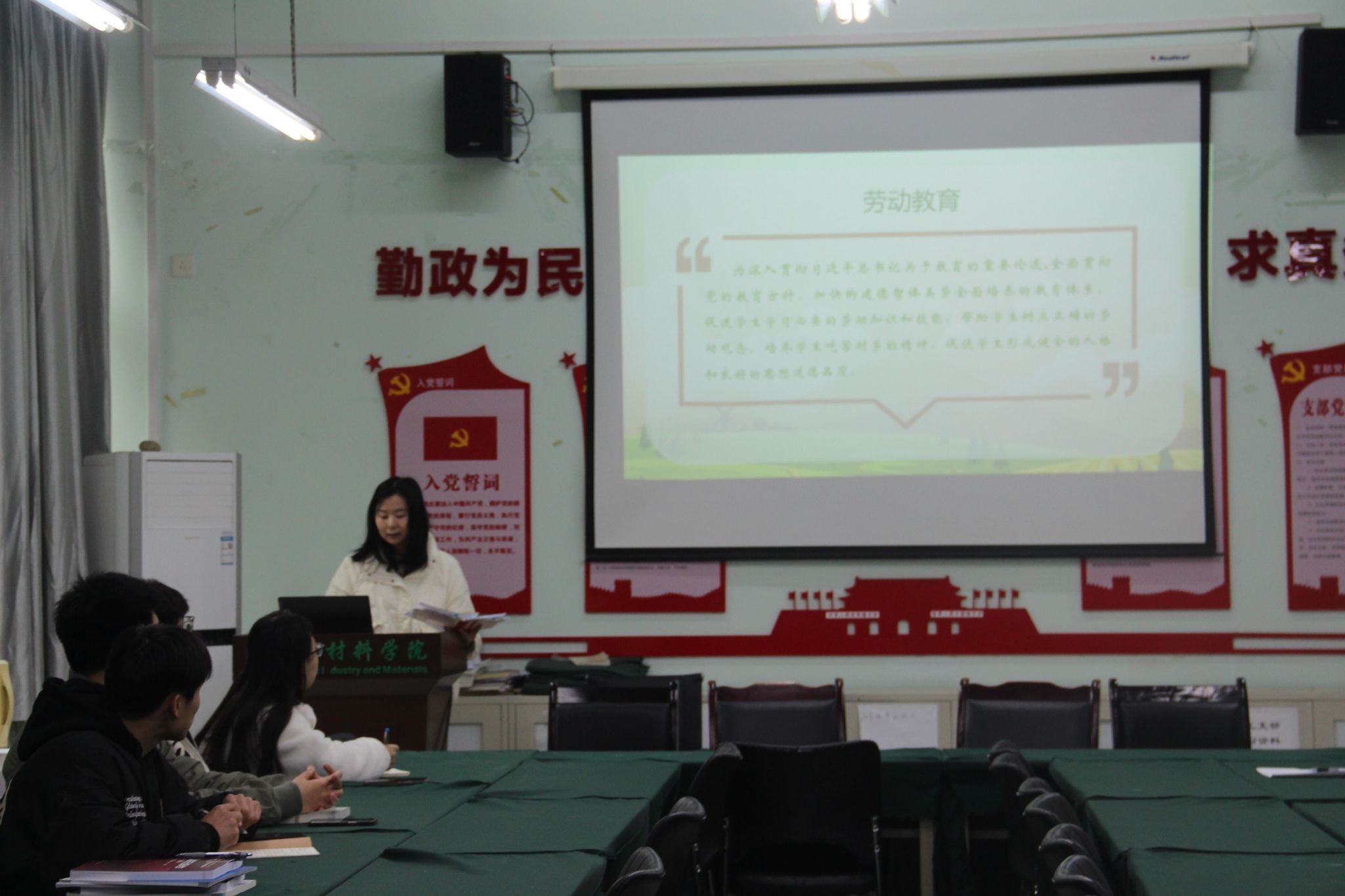 2月28日,轻工与材料学院在学院会议室召开2022级学生劳动教育专题宣讲会,学院党总支书记申昕、专职副书记雷春、负责劳动教育专项工作辅导员李小婉、2022级各班班长及劳动委员参加,宣讲会由李小婉老师主持。