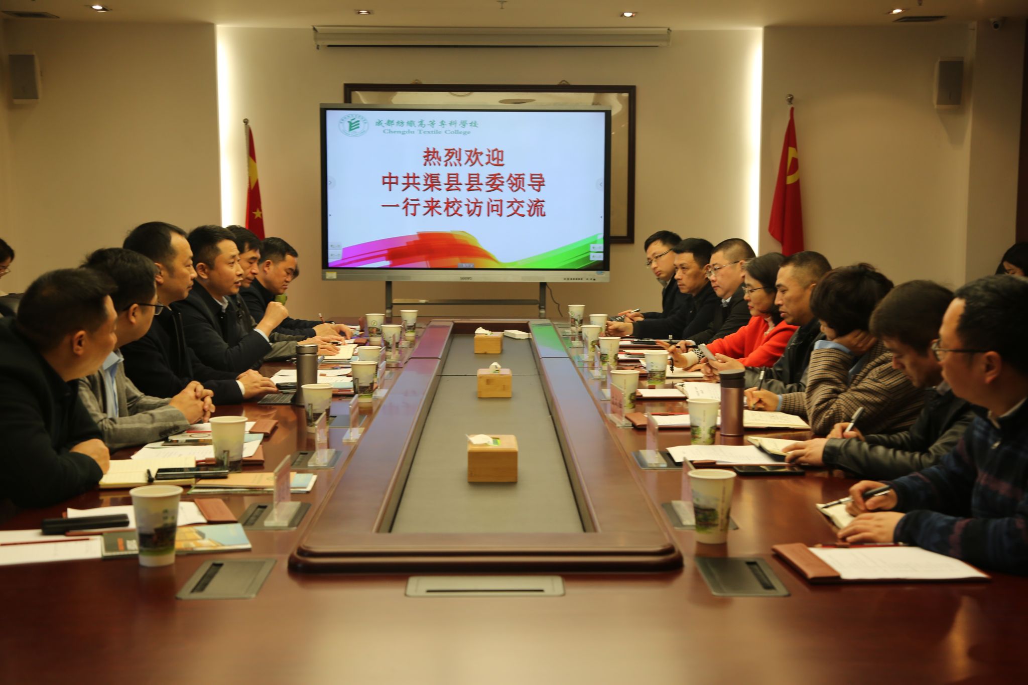 会上,双方就下一步如何在产业发展、人才培养、中高职衔接等方面开展合作,在纺织、印染、纺织品检验检测、产品设计等领域为渠县轻纺服饰首位产业提供技术服务,构建轻纺服饰全产业链进行了全面深入交流。