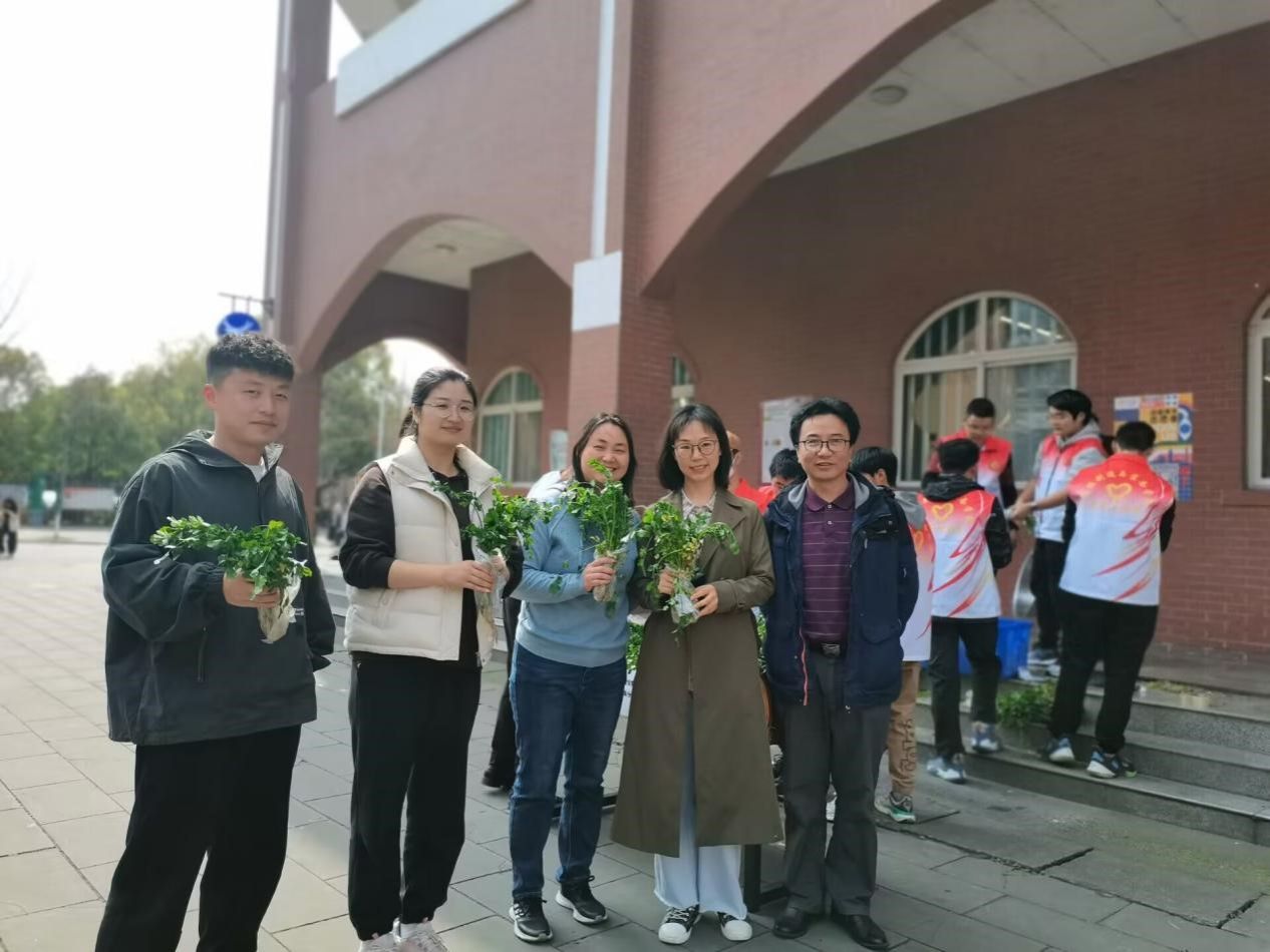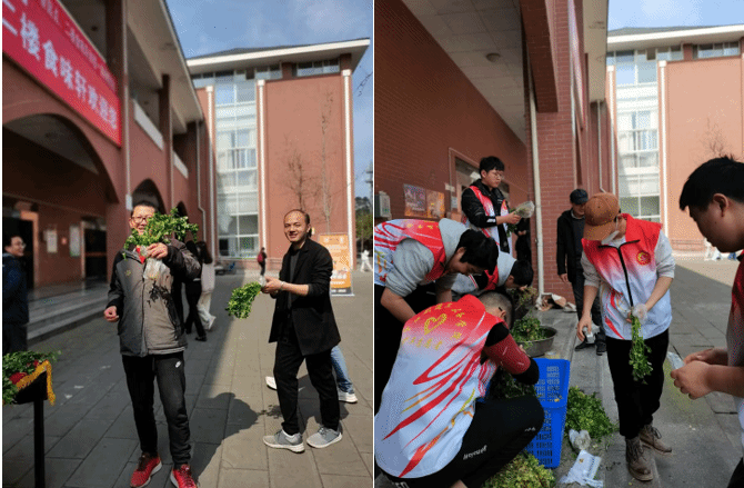 3月10日上午,智造学院的志愿者们在种植劳动指导老师冉隆奎带领下,来到北苑劳动种植基地,收取成熟的香菜。随后,志愿者们在北苑食堂门口开设专门发放香菜的摊位,邀请广大师生共享劳动成果,体验劳动快乐。