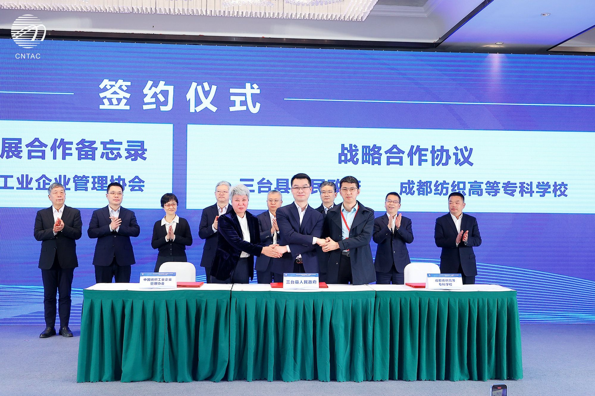 会上,宋超代表学校与三台县政府签订了全面合作战略协议。未来,学校将围绕三台县纺纱、织布、染整、制衣、制鞋、家纺等较为完整的纺织服装产业链,加强与三台鞋服产业园区、龙头企业的紧密合作,形成新的产教融合联合体,充分发挥学校办学的专业特色和优势,在人才培养、科研攻关、技术服务等方面助力企业产品创新、技术升级、绿色发展,为区域纺织产业发展贡献学校力量。