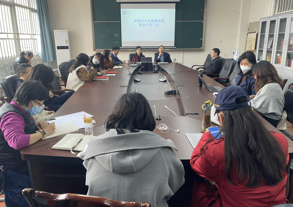 3月14日,外语与文化旅游学院在B401会议室召开2023年就业专项工作会,学院全体教职工参加,党总支书记樊廷友主持会议。