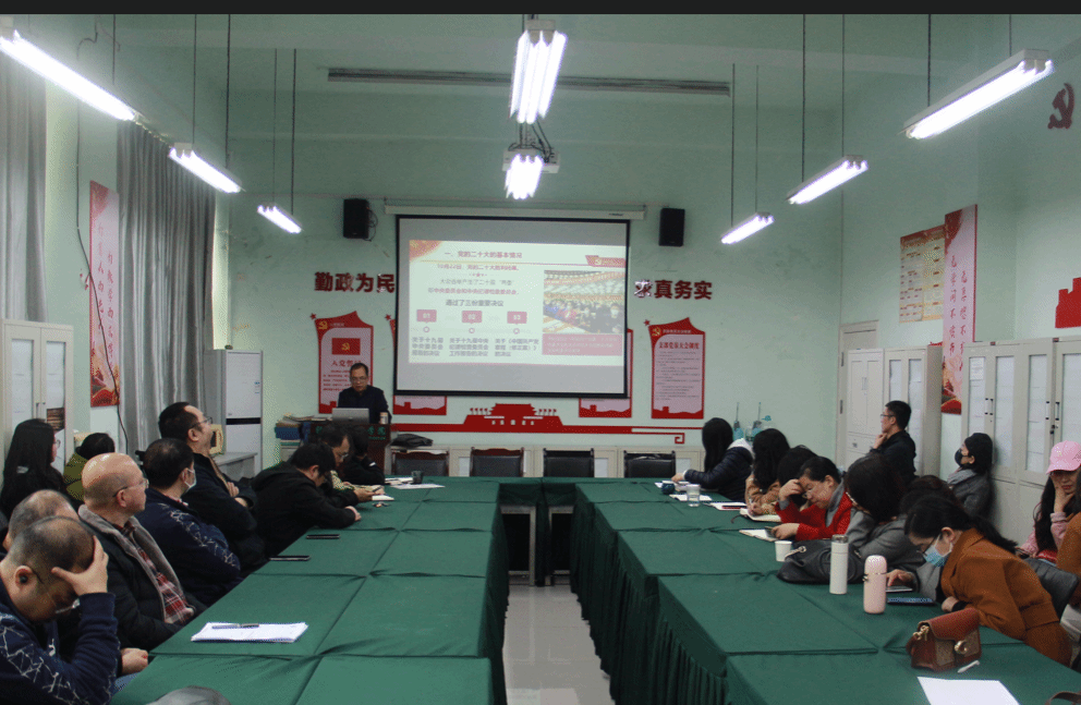 3月28日下午,轻工与材料学院在党建活动室召开党的二十大精神专题学习会,全院教职工参加。学习会由党总支书记申昕主讲,常务副院长蒋旎主持。