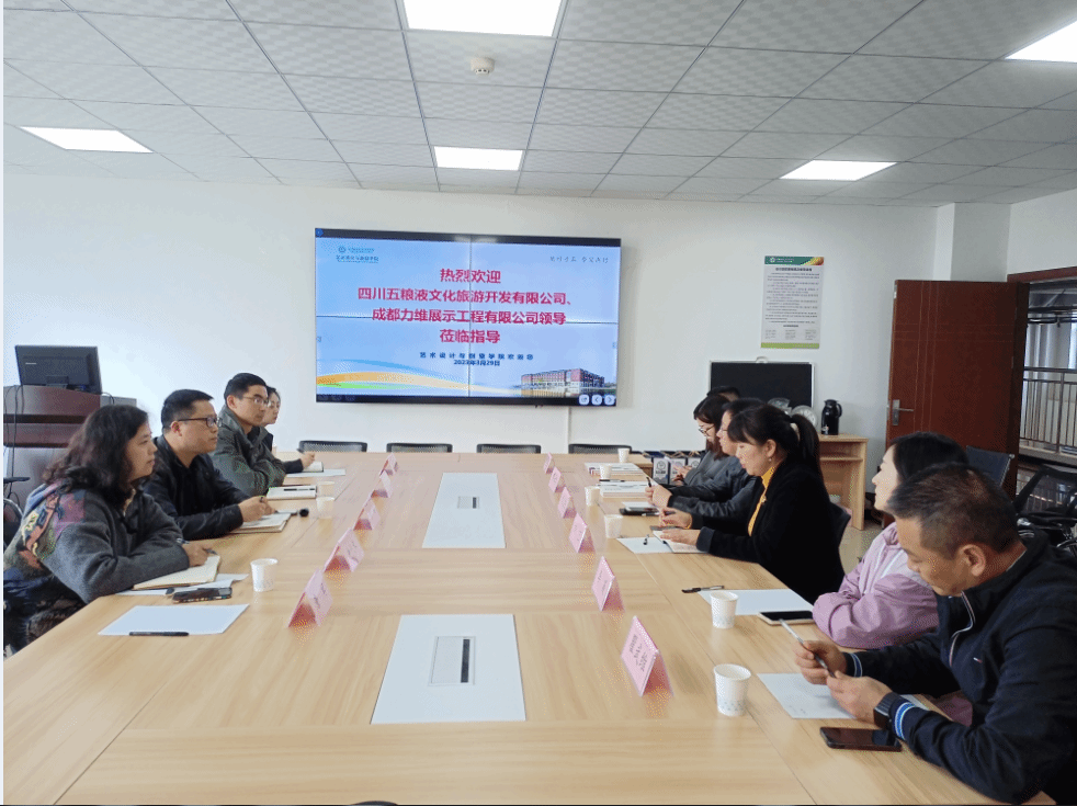 3月29日,四川五粮液文化旅游开发有限公司工会主席刘艺、市场营销部部长曾文虎一行到创艺学院考察交流,成都力维展示工程有限公司总经理瞿武维陪同考察。双方就校企战略合作,推进产学研有机结合,深化产教融合进行座谈交流。学院院长刘畅主持座谈会,学院相关领导、教师参加座谈。