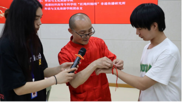 杨文艺老师向大家讲述了自己在国外传播非遗绳编文化的经历,强调文化强大是走出国门的重要底气。他介绍了新津绳编文化传承发展的历史渊源,讲述了非遗绳编对脱贫地区旅游业的推动和宣传作用,揭示了传统文化蕴涵的深刻内涵,并列举展示了部分基本绳结作品。期间,杨文艺老师寓教于乐,不断向同学们发起提问,同学们也积极参与互动,现场气氛十分活跃。