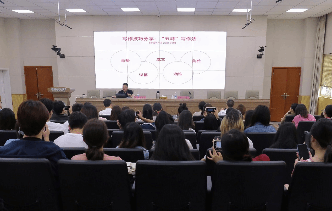 周林重点分享了审势、谋篇、成文、润饰、善后“五环写作法”。强调要做到在写作前吃透背景、分析形势,动笔时领会意图、拟定提纲,写作中提炼标题、画龙点睛,成文后修改提升、力求完美,发布前后则要密切关注动向、反馈,并善于总结反思经验教训。