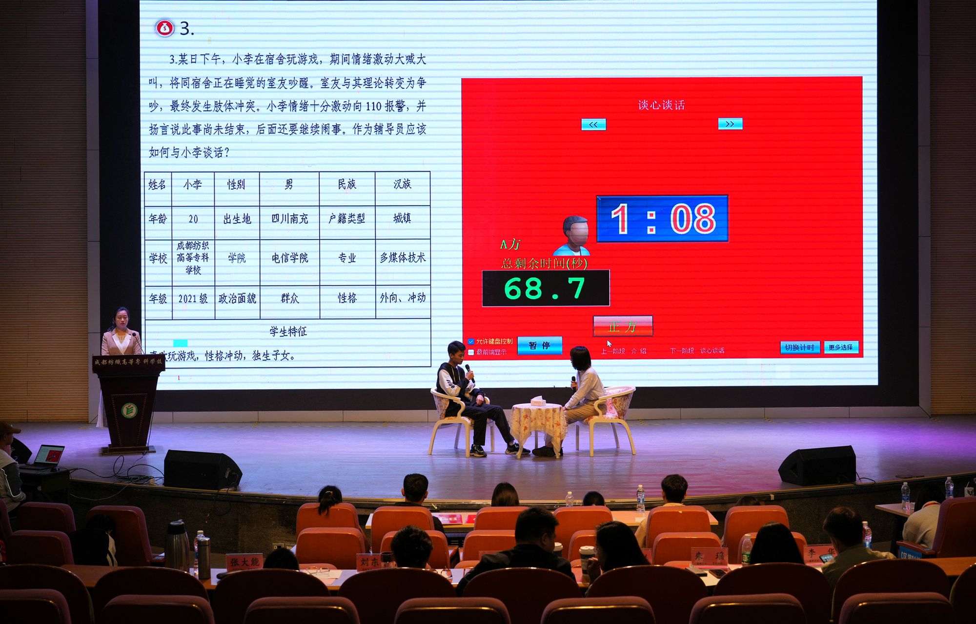 经过激烈角逐,轻材学院李欣怡、文旅学院夏佳获一等奖,文旅学院蒋平、服装学院蒋春燕、纺织学院李进获二等奖,文旅学院林凤琴、服装学院王燕、建环学院黎媛、数管学院何敏、电信学院余茹茂获三等奖。赛后,评委代表张邵希进行了点评,充分肯定选手们的现场表现。同时针对比赛过程中的案例研讨和谈心谈话环节提出具体指导意见。