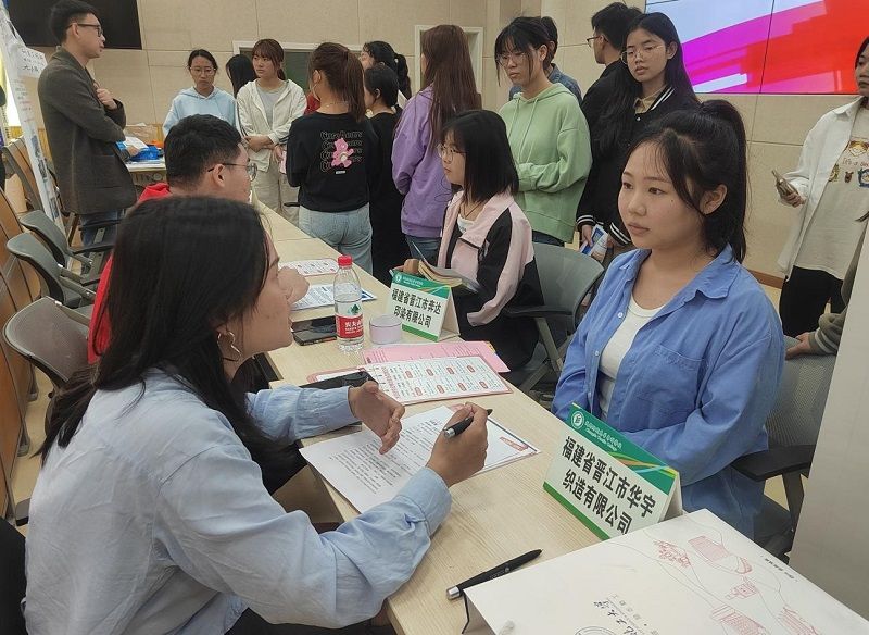 双选会现场,毕业生积极踊跃投递简历,并与招聘企业代表深入交流。有招聘企业代表表示,学校的专业设置非常契合晋江纺织、鞋服产业的需求,每年都有学校的毕业生到企业就业,和学校合作多年,对学校的人才培养质量非常认可。