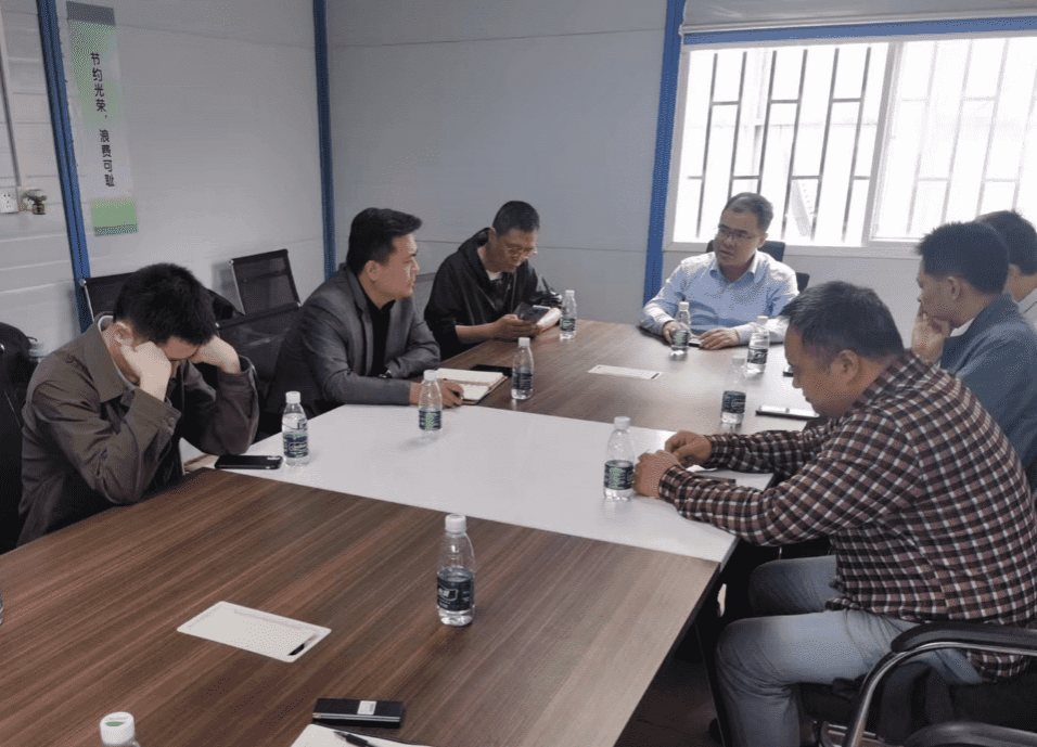 在进行现场踏勘后,李明富在项目部组织召开工作推进会,对项目工期、质量、安全及竣工验收时间节点进行了安排部署。
