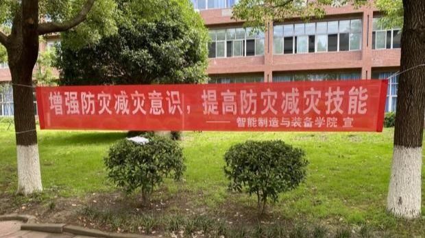 在学院层面,智造学院制作“增强防灾减灾意识,提高防灾减灾技能”横幅并悬挂于北苑食堂外街道旁,在南苑操场旁宣传栏以海报方式宣传各类灾害的特点及自救方式,并制作多条电子宣传标语,推送到各班,让学生学习。