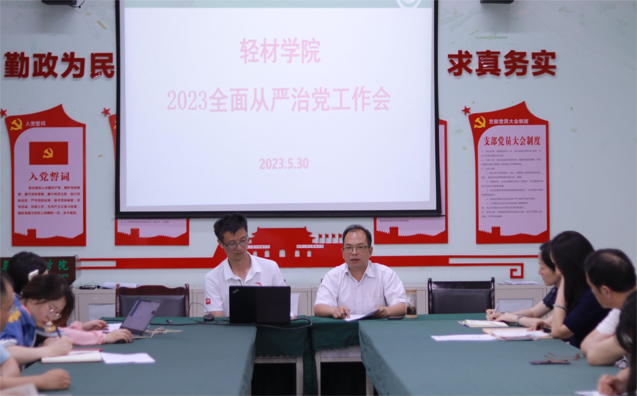 5月30日,轻工与材料学院在会议室召开2023年全面从严治党工作会。会议由常务副院长蒋旎主持,党总支书记申昕主讲,全院教职工参加。
