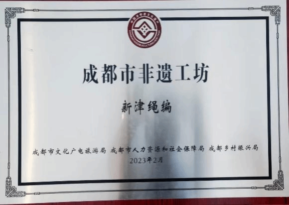 6月10日,2023“文化自然非遗日”活动在新都区斑竹园召开。活动期间举行了成都市第一批市级非遗工坊授牌仪式,我校外语与文化旅游学院联合四川省吉心文化传播有限公司申报的“新津绳编市级非遗工坊”获得成都市第一批市级非遗工坊认定。