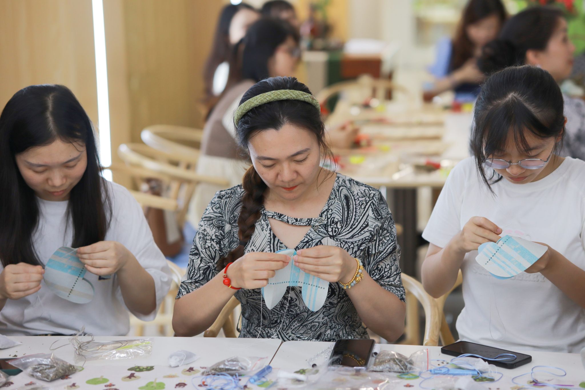 本次活动的内容分为“笔墨丹青绘团扇 传统文化展风采”“包艾草花束 品诗意端午”“端午安康 粽情同乐”“闻香识端午 巧手做香囊”四个民俗系列活动板块。教职工们兴致高昂,互学互助,其乐融融,现场节日氛围浓厚。绘画各异的团扇、造型多样的香囊、饱满精致的粽子、精美芬芳的花束,在教职工的手中逐渐成型,大家在活动体验中充分感受端午节民俗文化的魅力。
