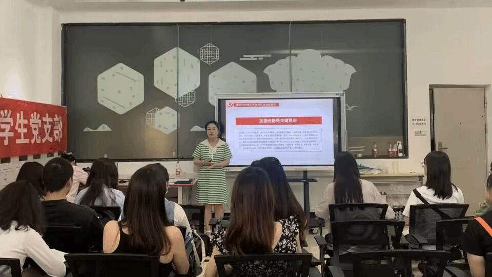 学生党支部书记李梅,学院入党积极分子、预备党员、正式党员参加学习会。