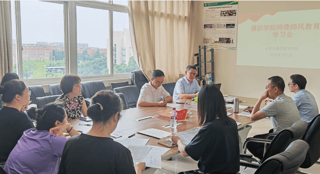 7月7日,人文与通识教育学院在教学楼D508召开师德师风专题学习会。会议由支部书记李光胜同志主持,学院全体教职工参加了此次专题学习会。