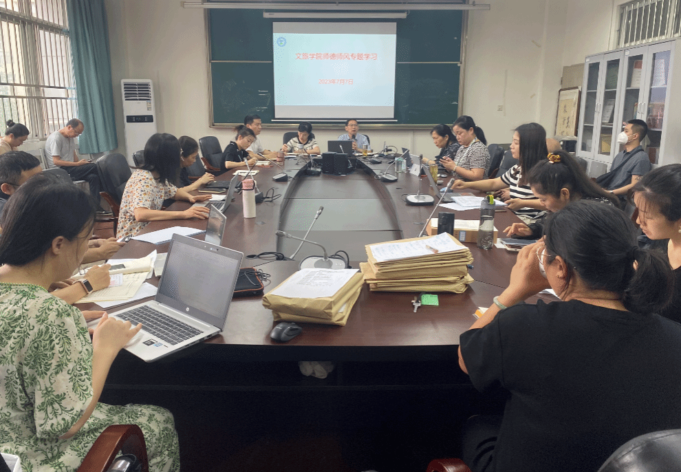 7月7日上午,文旅学院在教学楼B401会议室举行师德师风专题学习会暨期末工作总结会。党总支书记樊廷友主持会议,领学《成都纺织高等专科学校师德集中学习教育实施方案》,解读《新时代教师职业行为十项准则》。副院长(主持工作)王敏作学期工作总结。