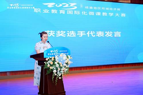 7月7日,在2023年(首届)成渝地区双城经济圈职业教育国际化微课教学大赛中,我校数管学院教师郑智月团队的参赛作品《说影之文化传承 Cultural Inheritance of Shadow Puppetry》晋级总决赛,荣获中华文化类作品一等奖,郑智月在颁奖典礼上代表四川省获奖选手发言。