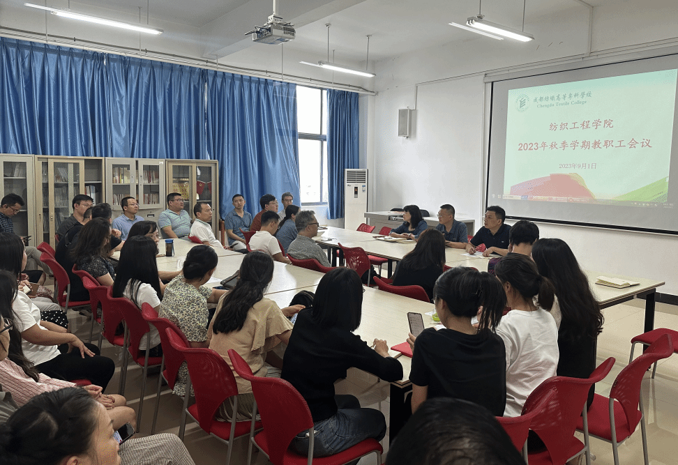 9月2日,纺织工程学院召开2023年秋季学期开学工作会,传达学习上级会议、文件和讲话精神,总结学院暑期工作,布置新学期工作。院长宋雅路主持会议,全体教职工参会。